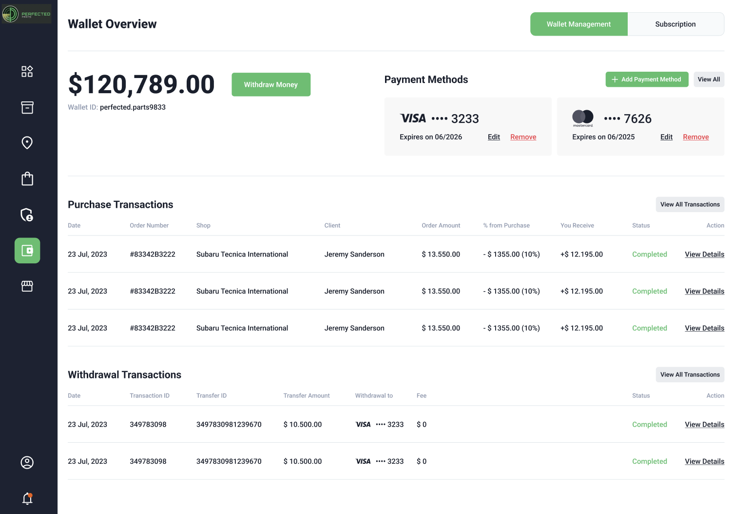 Manage your inventory seamlessly via our dashboard. Publish products on the peer to peer marketplace, use, or sell parts via the Perfected Parts Dashboard to keep your inventory moving and in order.